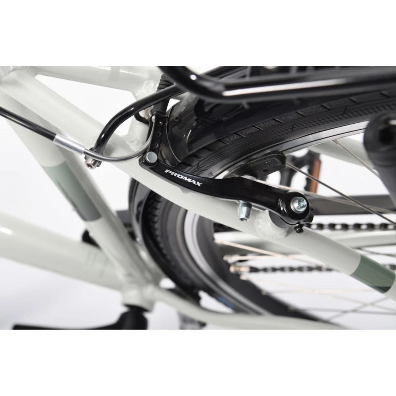 Entièrement équipé, ce vélo confortable est taillé pour vous messieurs. Le moyeu à pignons Shimano Carbon Drive offre tous les avantages d’un système durable, qui ne nécessite qu’un minumium d’entretien. Les freins en V et le frein à rétropédalage vous permettent un freinage en toute sécurité. Équipé d’une tige de selle à ressort et d’un débattement de 40 mm à l’avant, vous ne subissez aucun coups lors des petits obstacles.